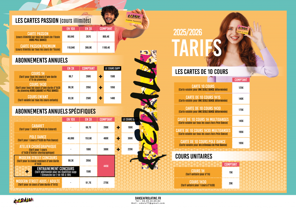 * Tarifs réduits : – de 18 ans, étudiants, chômeurs (l’Ecole est autorisée à vous demander des justificatifs)